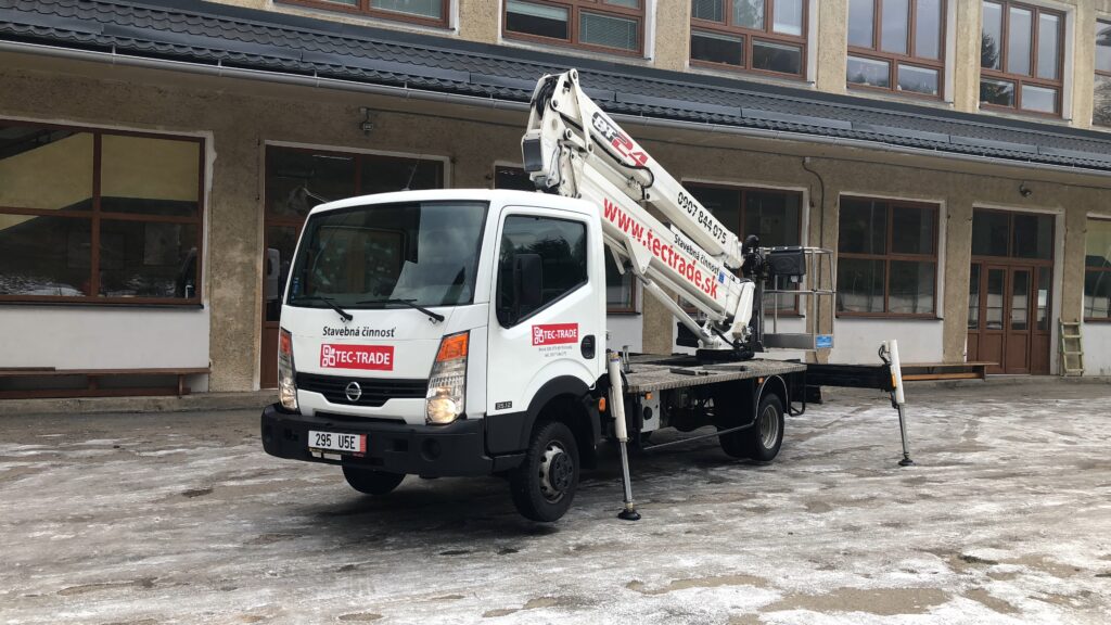Prenájom montážnej plošiny je ideálnym riešením pre všetky práce vo výškach – či už ide o strešné opravy, fasády, čistenie odkvapov alebo iné výškové úlohy. Naša plošina je bezpečná, spoľahlivá a jednoducho ovládateľná, čo výrazne urýchľuje a zefektívňuje vašu prácu bez kompromisov na bezpečnosti. Poskytujeme poradenstvo pri jej nasadení aj dopravu na miesto podľa vašich potrieb. Flexibilné podmienky prenájmu umožňujú využiť plošinu krátkodobo aj na dlhšie projekty. Vďaka tomu je prenájom výhodným doplnkom pre stavebné aj údržbové práce. Okrem plošiny vám ponúkame na prenájom aj žeriav V3S AD 080.